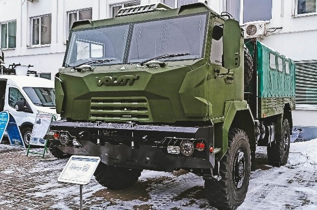 MZKT-550130 tactical vehicle with 4x4 wheel formula (front axle wheels driving) has a two-seater cab located above the engine, a platform with a canopy and tailgate. Among the vehicle’s features there are: right-hand steering wheel, increased carrying capacity (up to 5000 kg), high-quality engine and gearbox, winch with increased traction force (up to 7 tons), air conditioner. At the end of January, the car was presented at press-show of equipment during the final forum of the State Committee for Military Industry, and is now ready to be exhibited.