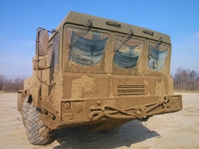 About 1 ton of mud – this is the amount that the drivers have to remove every day from the test piece of the MZKT-7930-300 chassis for which the acceptance tests carried out by the Ministry of Defense of the Russian Federation are in progress now at the test ground in Bronnitsy near Moscow. The key specific feature of this chassis is the new-generation automated gearbox made by MWTP.