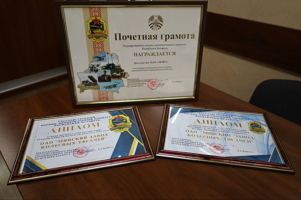 По результатам работы за 2024 год коллектив ОАО «МЗКТ» признан лучшим среди организаций промышленности и удостоен почетной грамотой за достижение лучших результатов по итогам выполнения бизнес-плана развития в 2024 году, а также двух дипломов за лучший интернет-сайт — как среди предприятий промышленности, так и среди организаций ГВПК. Эти достижения подчеркивают высокие стандарты и инновационный подход компании в 2024 году, а также ее стремление к постоянному совершенствованию и внедрению новых технологий в производство продукции ОАО "МЗКТ".