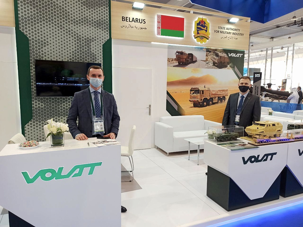 На коллективной экспозиции Госкомвоенпрома ОАО «Минский завод колесных тягачей» не упустил прекрасную возможность провести ознакомление с новейшими мировыми образцами вооружения и продемонстрировать широкую линейку современной техники VOLAT, востребованной в ближневосточном регионе: легкобронированный автомобиль МЗКТ-490101, трёхзвенный танкотранспортер МЗКТ-741351+999421+837211, БТР МЗКТ-690003 и семейство тактических автомобилей МЗКТ-500200, МЗКТ-600103 и МЗКТ-600203.